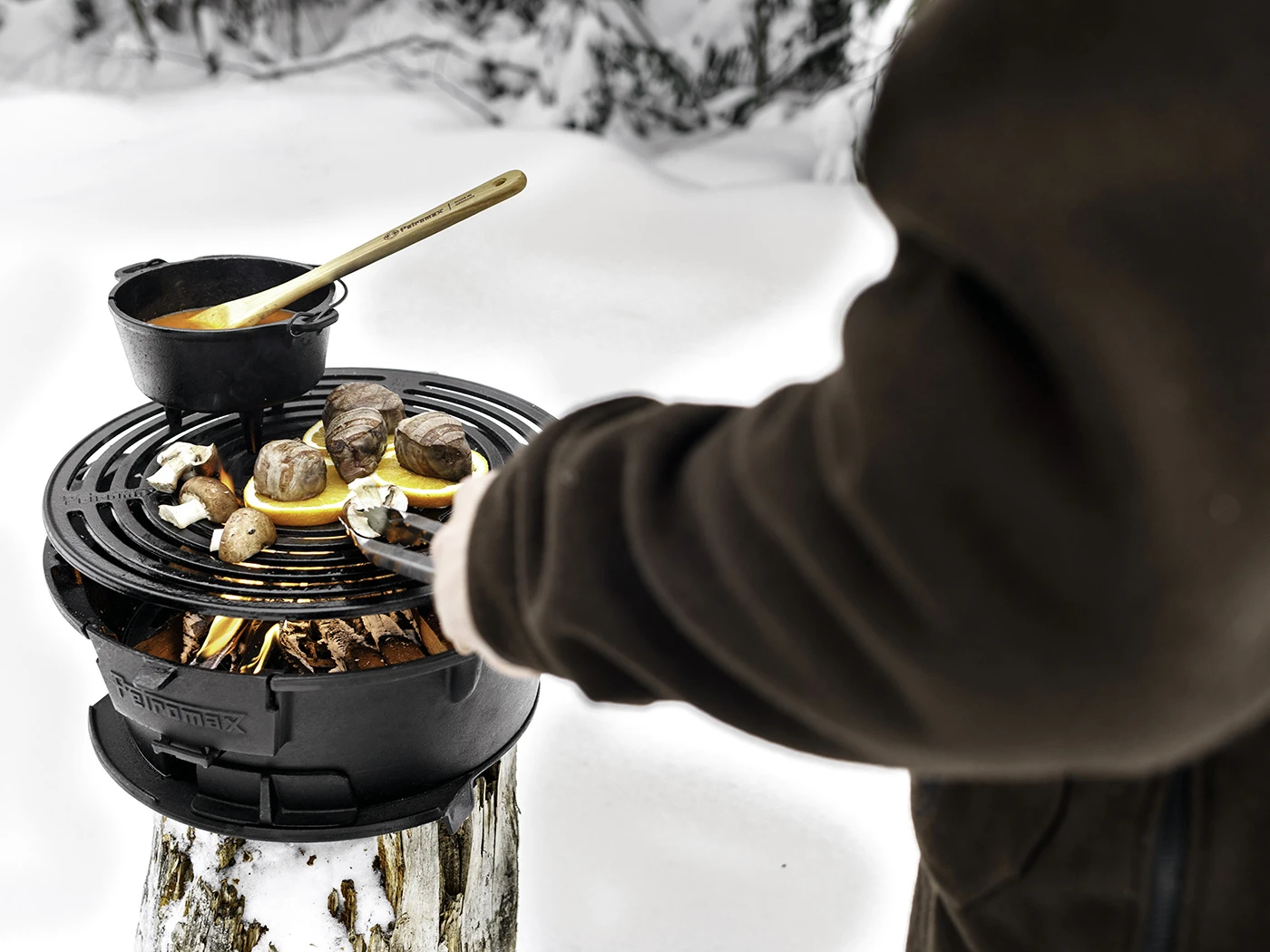 Het gietijzeren materiaal van de barbecue zorgt voor een gelijkmatige warmteverdeling en behoudt de warmte goed, waardoor het gemakkelijk is om het vuur te regelen en voedsel te bereiden met een mooie krokante korst. Tevens kan je de bbq gemakkelijk combineren met je bestaande Petromax Dutch Oven.Â