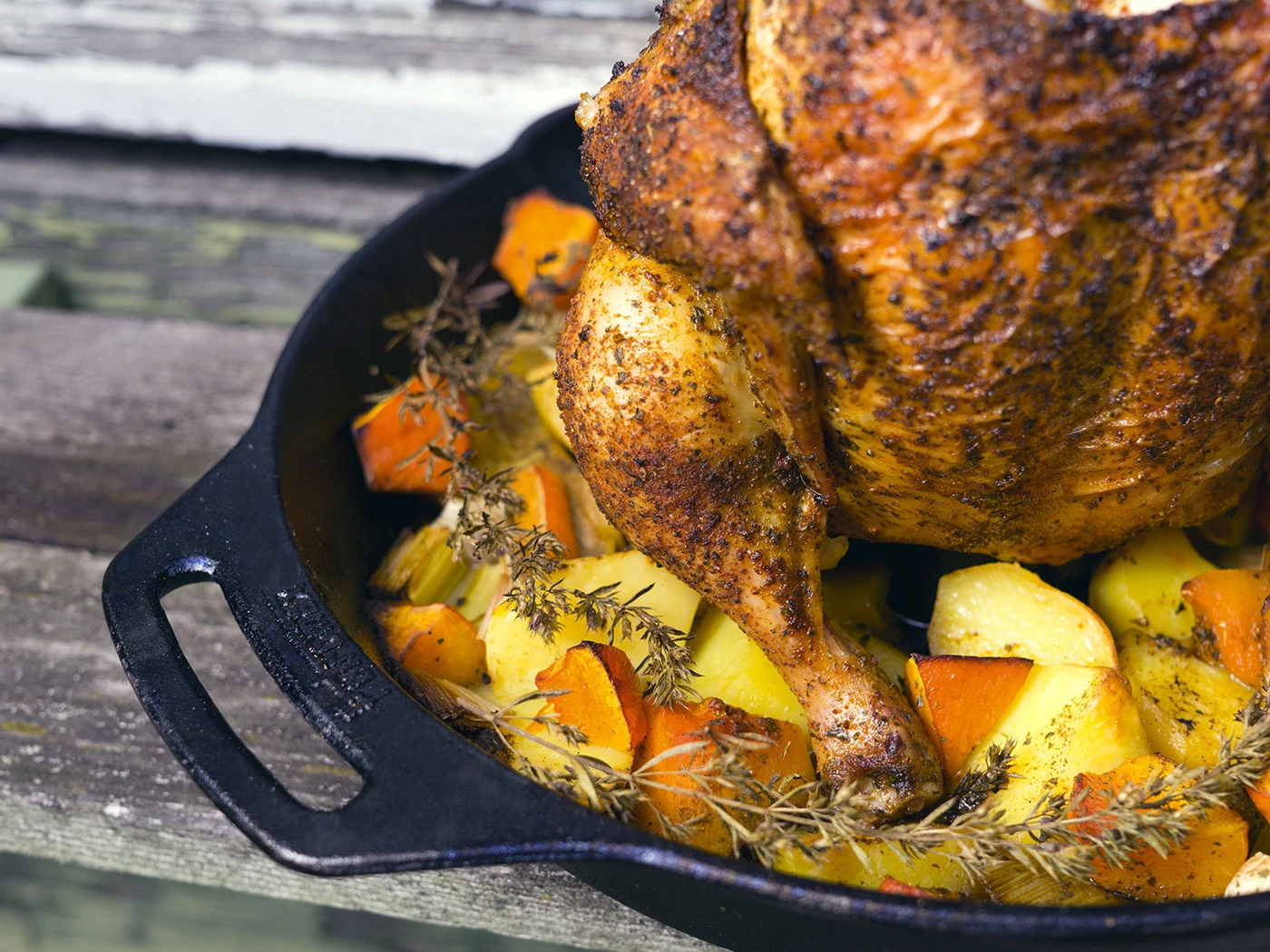 Door de kip rechtop te zetten op de gietijzeren kip standaard, kan de hitte gelijkmatig circuleren rond de kip, waardoor het vlees gelijkmatiger en sappiger wordt gekookt. Bovendien laat de kipvetten en -sappen tijdens het koken gemakkelijk uitlopen, waardoor de kip minder vet en knapperiger wordt.