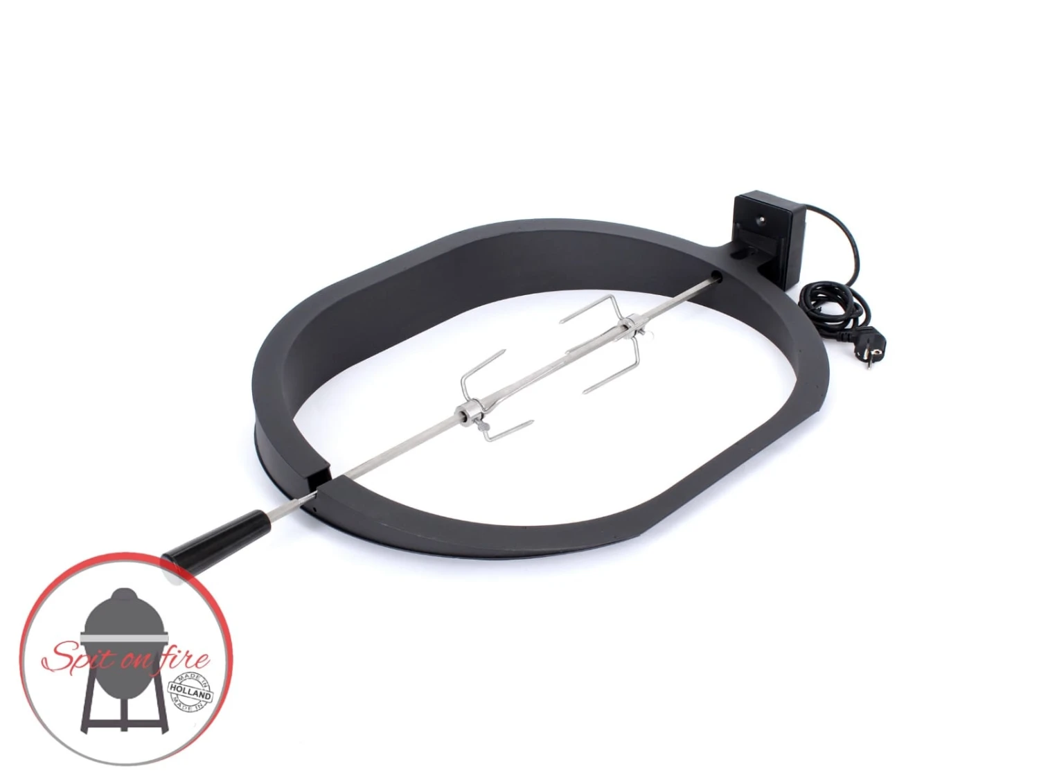 Spit on Fire is een universele rotisserie bestaande uit een RVS Spit en een 4 Watt krachtige elektrische motor. De Spit en de motor zijn geruisloos. En uitermate geschikt voor het grillen van kip, hoenderen, kalkoen of bijvoorbeeld Argentijnse Picanha steaks.